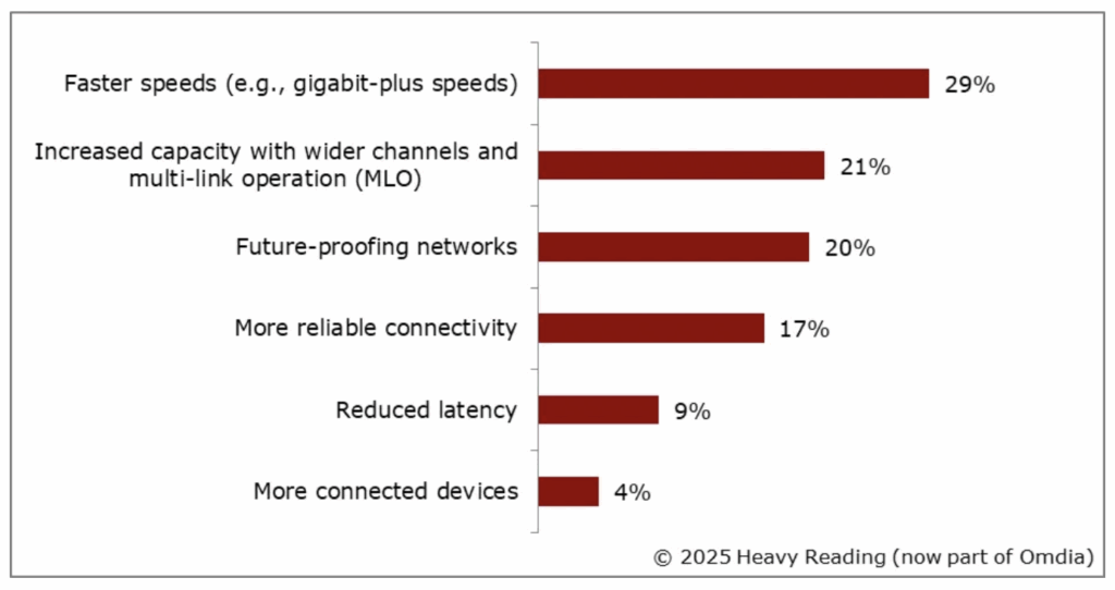 As discussed in the white paper, “faster speeds” is still ranked as the leading capability of Wi-Fi 7 (29%), followed by: