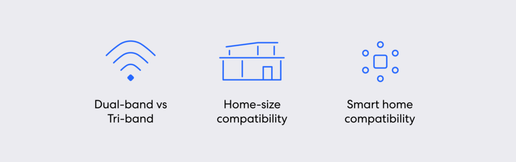 - Dual-band vs. tri-band – If you live in a busy household with multiple devices connected at once, a tri-band system can provide smooth, uninterrupted performance. The extra frequency band helps balance traffic, preventing congestion and keeping speeds fast even during peak usage.