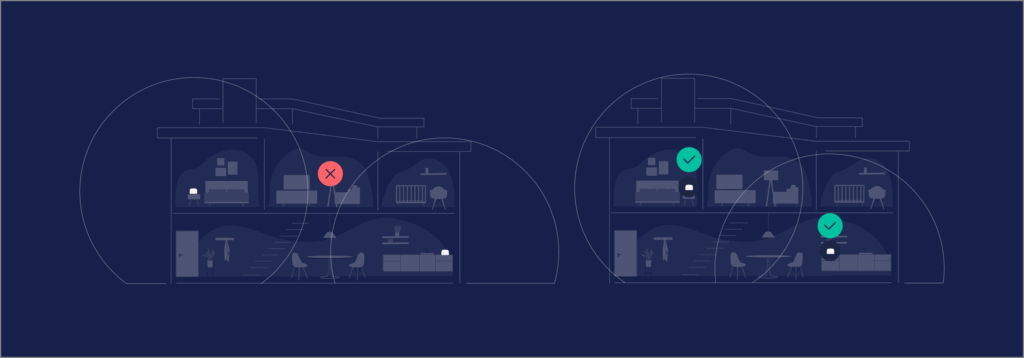 Placing nodes too far apart or too close together can affect their communication efficiency. Proper placement helps reduce interference from dense materials like concrete, brick, and metal, supporting stronger connections throughout your space.